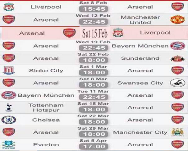 5 games in 14 days 0_o and that to with United, Liverpool, and Bayern.. Good luck to Wenger, it seems like luck is not on his side