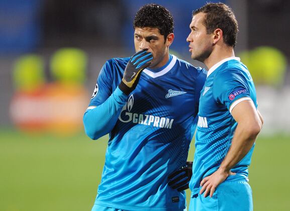 Zenit St. Petersburg's front two are Alexander Kerzhakov, the striker, and Hulk, the wide forward.