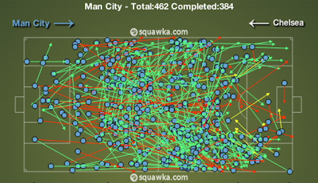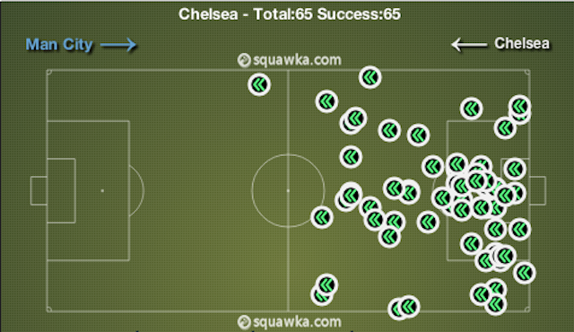 As a consequence, City were able to complete very few passes in and around the Chelsea area, as the following diagram demonstrates.