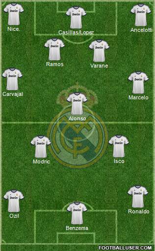 He might be in the starting XI. Depends on Ancelotti though. I think that Ancelotti may modify our system to make Ronaldo go forward more, and have Ozil and Isco supplying him and Benzema with passes. Or perhaps he'll choose a 4-3-3 formation, with Modric, Alonso, and Isco at centre-mid and Ozil-Benzema-Ronaldo up front. Only time will tell how Isco is used at Madrid. :/