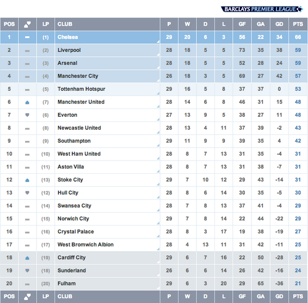 tottenham may have a slight chance to make it into top 4, if they beat arsenal this weekend :)