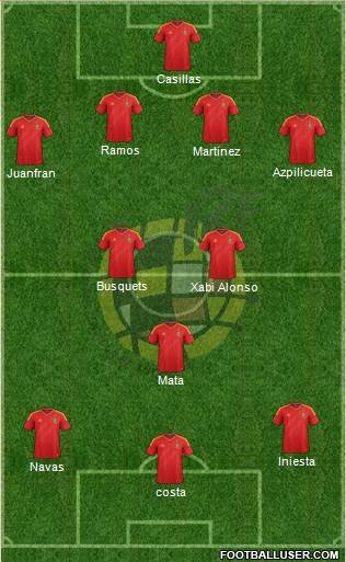 Pique is too inconsistent. I'd rather have Inigo Martinez in CB beside that idiot Ramos (who somehow hasn't gotten a single red card with Spain). And I agree with @Knibis. I feel that Azpilicueta isn't as good as he is hyped to be. Good player, but not great (yet). Juanfran or Ramos are much better and more suited at RB.