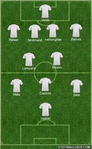Cech,Rafael,Ivanovic,Vertonghen,Baines, Cazorla,Hazard,Bale,Mata,Suarez, RVP