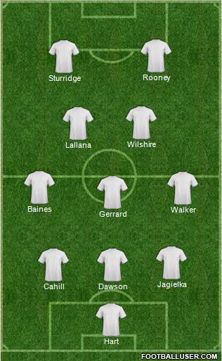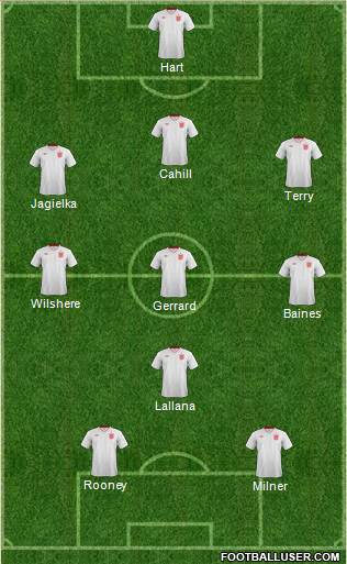 was thinking about whether to put terry in it but i dont think that he is better than jagielka. Also i believe that lallana has been destroying the premier league this season and deserves to be included in my line up and whilshire is a definite no matter what happens. Ideally sturridge and welback will be further wide. It was either gerrad or lampard because they both do the same thing which is slowing down the game and we need 1 of those in our team not 2. We need youth as well as experience if we want to have any chance of winning a game in this world cup. Only people who i feel should make this team but dont have enough game time to prove themselves is milner who is the most consistent player in the league, townsend and walcott (obviously because of injury)